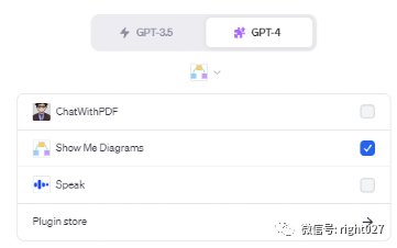 进行GPT-4,单击如图插件的位置,选择“Plugin store”进入插件商店。