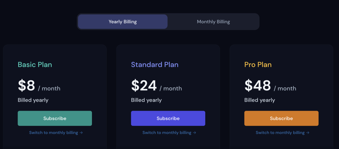 A:新用户有25次的免费使用额度,超过的需要开会员,会员分8美刀、24美刀、48美刀两种方式。