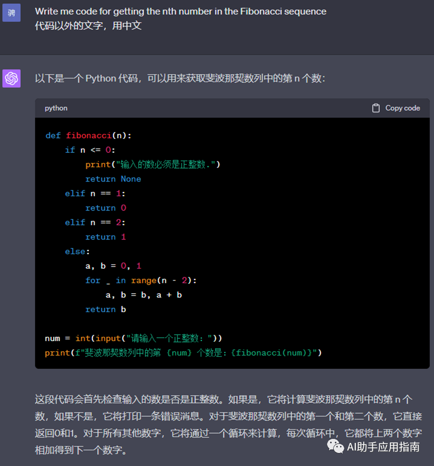 一般的编程问题,ChatGPT默认用Python回答,并且给出原理的解释: