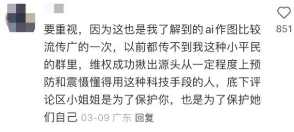 不仅如此,严丝合缝的AI合成还引起了恐慌,部分人表示不敢再随意发自己的照片了,毕竟随便一张照片在网络上找到相关AI软件进行“一键转换”就能毁掉一个人。