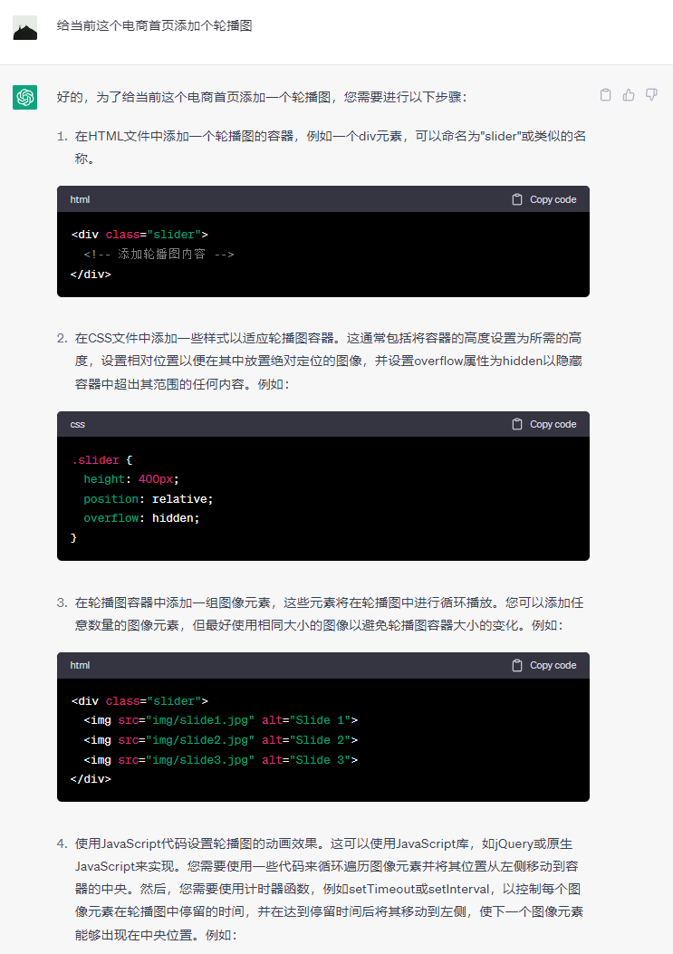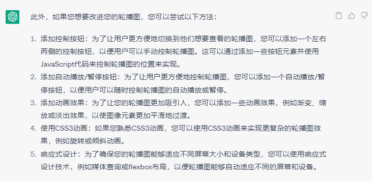 // 获取轮播图容器和图像元素var slider = document.querySelector(".slider");var images = slider.querySelectorAll("img");// 设置轮播图容器的宽度以适应图像元素slider.style.width = 100 + "%";// 设置每个图像元素的宽度以适应轮播图容器for (var i = 0; i < images.length; i++) {images[i].style.width = 100 + "%";}// 设置计数器以跟踪当前显示的图像元素var counter = 0;// 设置计时器以控制轮播图的动画效果setInterval(function () {// 将当前图像元素移动到左侧images[counter].style.left = "-100%";// 将下一个图像元素移动到中央位置counter = (counter + 1) % images.length;images[counter].style.left = "0";}, 2000);