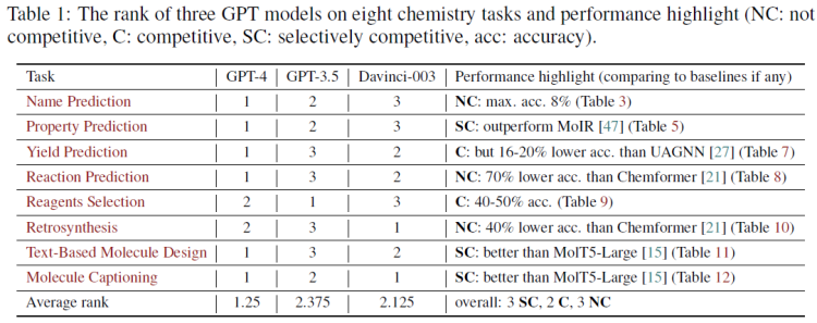 Guo, T., et al. (2023). "What indeed can GPT models do in chemistry? A comprehensive benchmark on eight tasks." arXiv preprint arXiv:2305.18365.
