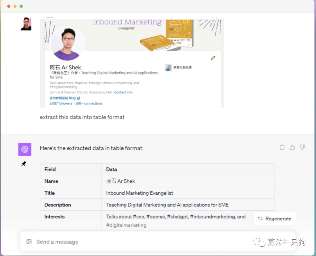 制作结构化的数据如果输入图片,甚至可以让ChatGPT进行结构化数据的提取。