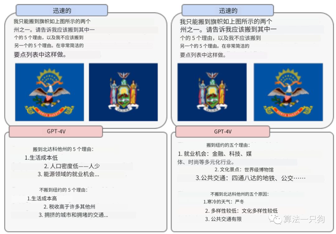 在下面的示例中,根据输入的旗帜询问应该搬到哪个州,但是从本质上看,模型的输入很依赖图片的输入顺序。