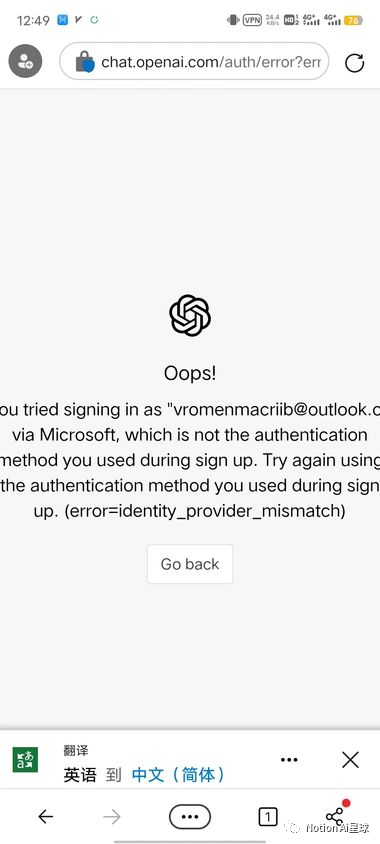 解决办法 用账号密码直接登陆,不要授权邮箱登陆。如果不知道自己openai密码多少,点 forgot password重置一下密码