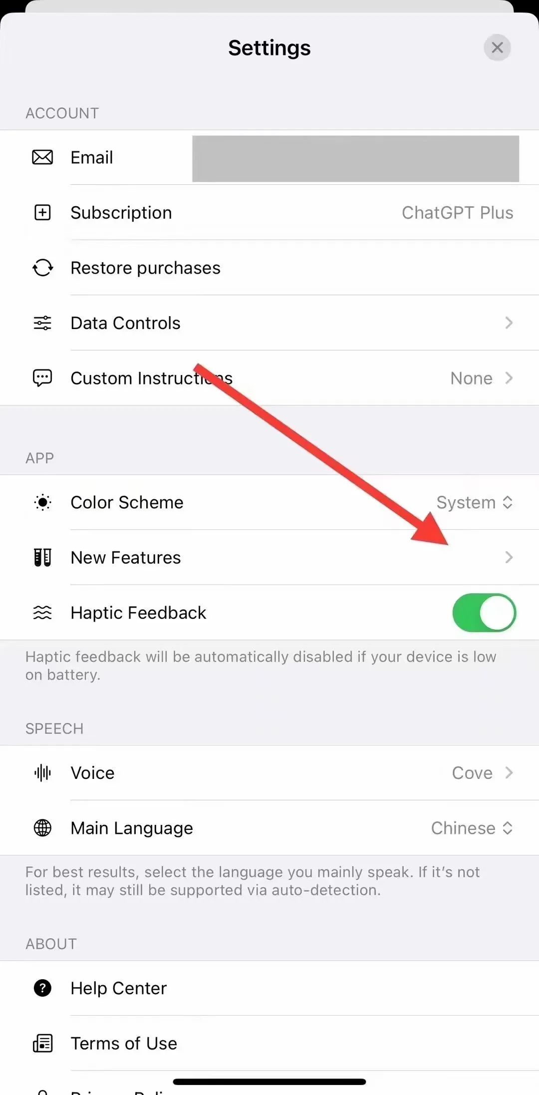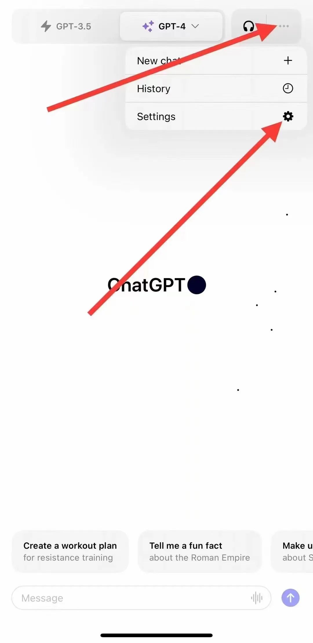 当你打开ChatGPT应用时,会发现右上角有三个小点。