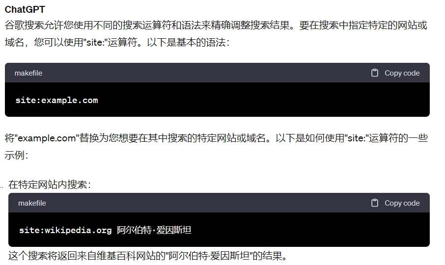 我们就可以使用 site:chat.openai.com 进行搜索,结果如下:
