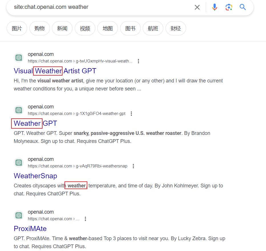 当然月底OpenAI上线GPT Store后我们可以在GPT Store里进行搜索,但是总有没有发布到Store里的GPT(只是通过链接分享),我们就可以在谷歌里搜索。