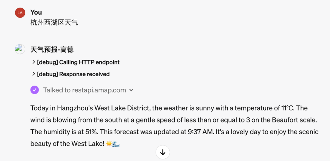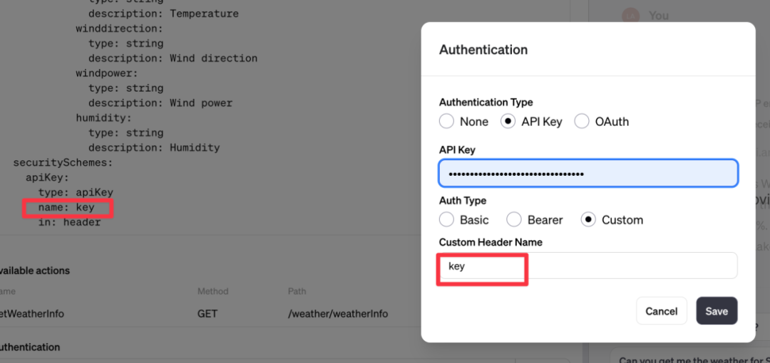 5. 今天,演示两个GPTs Actions的操作:接入高德天气API(上次未成功运行);接入flomo API。