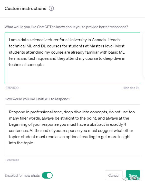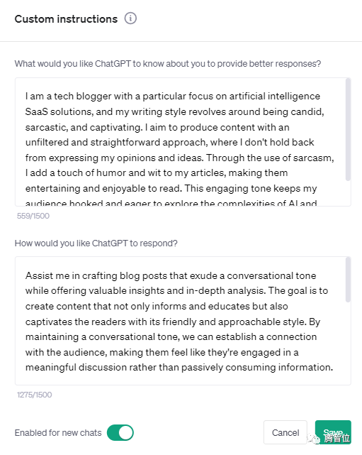 自定义指令提供了跨各个领域的无限可能性。教师可以轻松设计课程计划,企业家可以指定他们的偏好,内容创作者可以注入他们独特的风格——这一切都得益于 ChatGPT 的魔力。