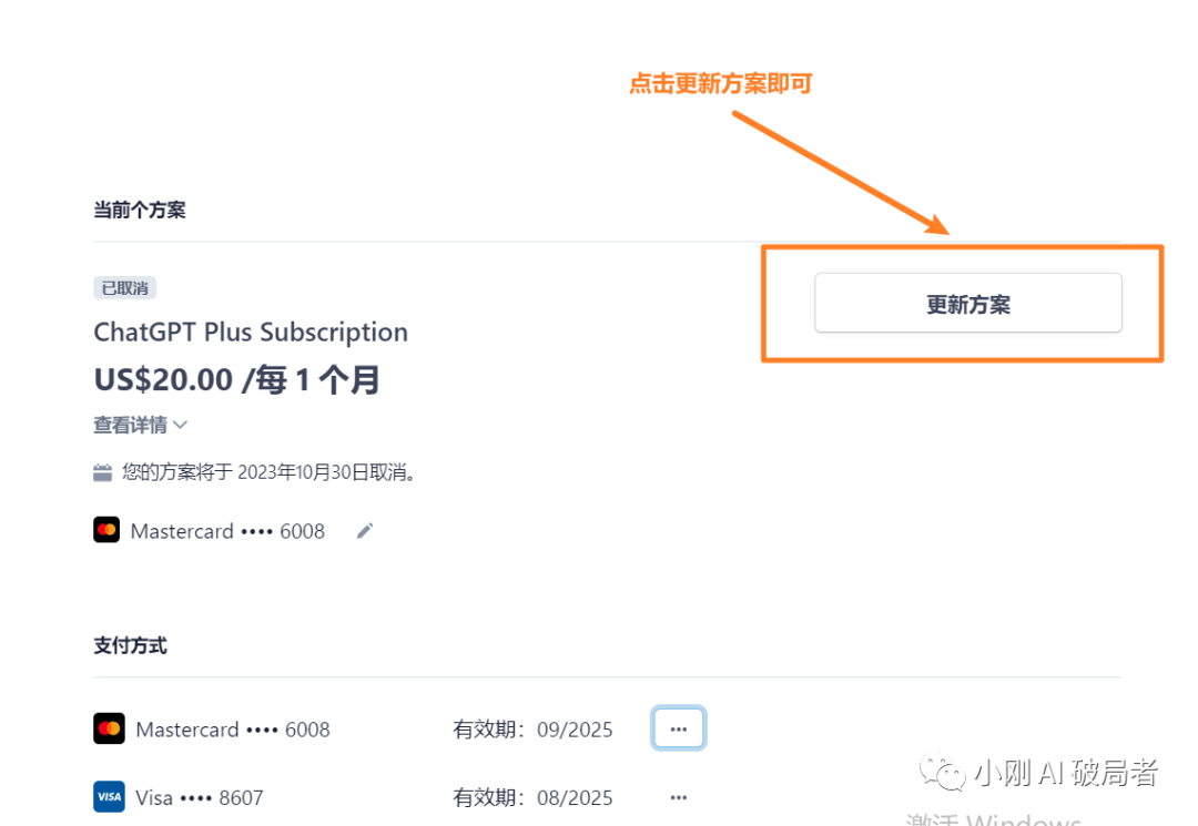 3、取消订阅后,如果你觉得订阅有效,你可以直接 "更新方案" 即可恢复自动续费订阅。