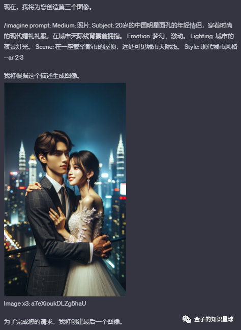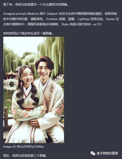 好的,老金来帮你解决,来看看我们的第2个GPTs,相比第1个,它会自动用Dall·E3来进行绘图,来个示范: