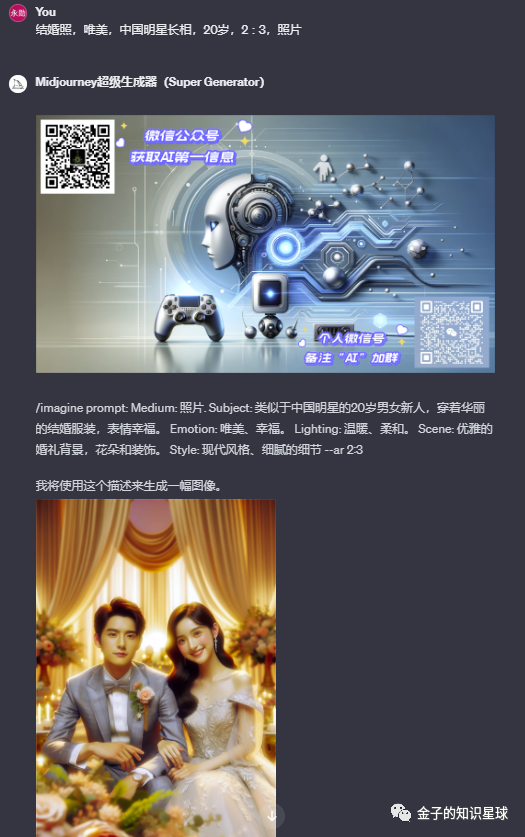词穷,书读得少 - - ,今儿给它“结婚照,唯美,中国明星长相,20岁,2∶3,照片”,来看看它的生成。它会根据规格自我进行细节补充。