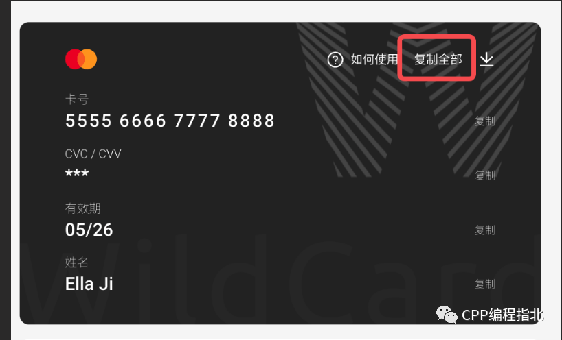 另一个是卡片信息,点击卡片右上角的复制全部即可
