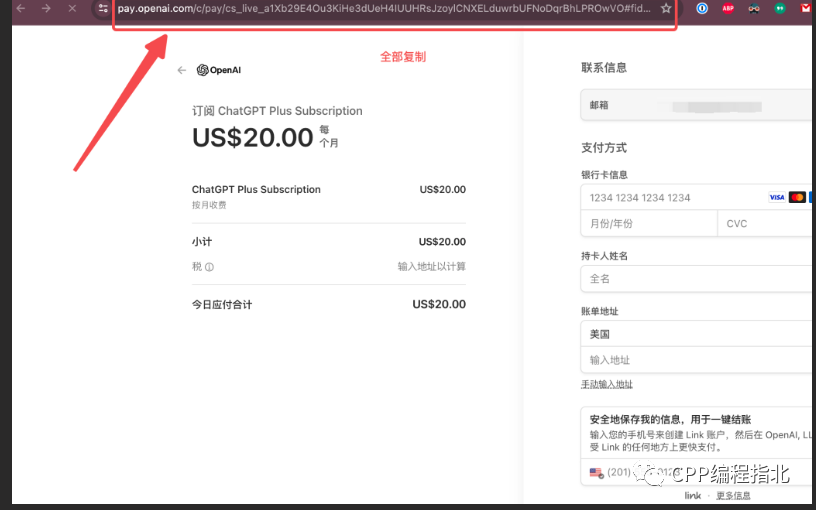 一个是支付页面的网址,需要您返回上一步,然后重新点击 Upgrade 进入一下 chatgpt 的付款页面,什么内容都不要填,直接把复制一下 pay.openai.com 开头的那个全部网址,发给客服。