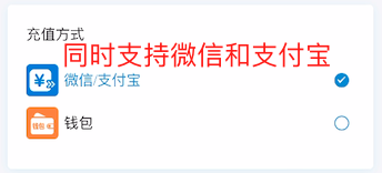 第三个就是选择充值方式,微信或者支付宝都可以,