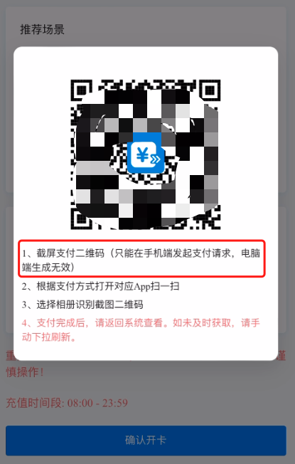 最后点击「确认开卡」就行了,它会生成一个支付二维码,支付宝或者微信都可以。