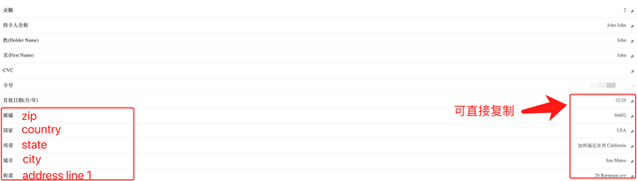 地址可以直接用卡上面提供的信息,直接就是免税州的地址,可以按照下图的信息一一对应的填写。