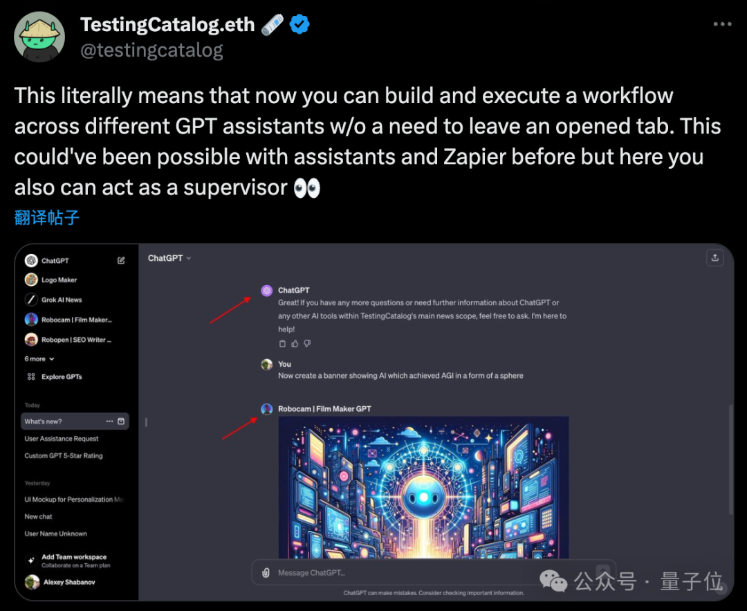 更多网友体验后发现,这还意味着不同的GPTs之间从此可以共享上下文。