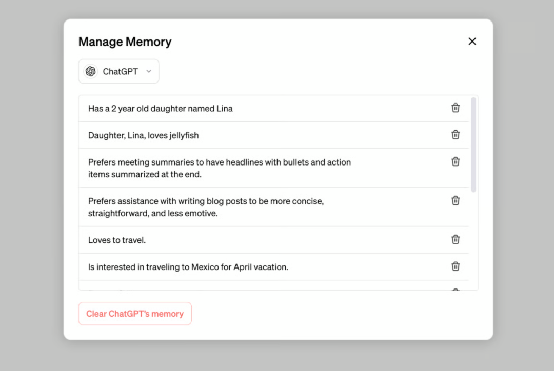 据OpenAI称,记忆功能使ChatGPT能够了解用户的喜好和风格,这应该会进一步提高工作效率。