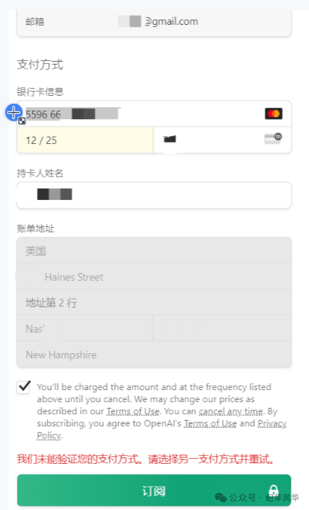 问题2:没有及时给银行卡充值或者银行卡中的余额不足,ChatGPT扣款没有成功,如图1所示: