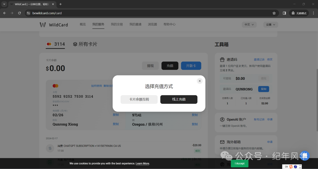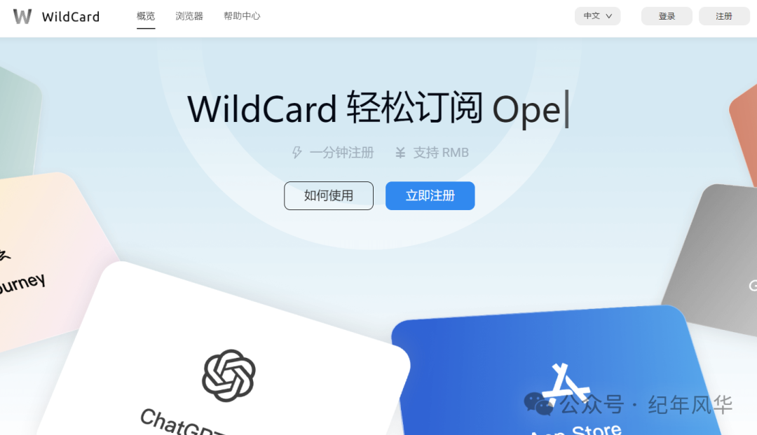 第一步:用谷歌浏览器无痕模式,登录WildCard | 一分钟注册,轻松订阅海外软件服务,点击下面卡片,即可跳转bewildcard.com。