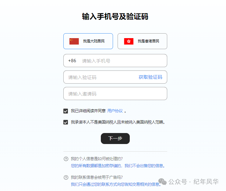 第四步:填写邀请码 QUNRONG。在获取验证码后,须填写邀请码,才能完成注册。
