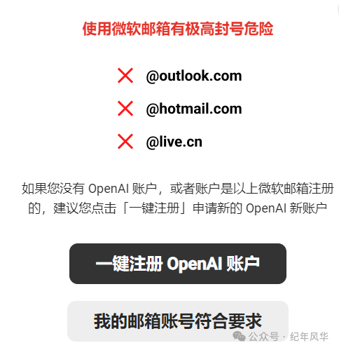 第7步:如果没有OpenAI 账号,选择一键注册;如果有账号,选择“选择我的邮箱符号要求”,如图9所示