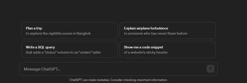 在 ChatGPT 屏幕的底部,你会看到一个标有 " Message ChatGPT "的方框,这就是你和AI对话的地方。
