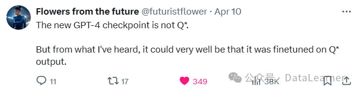 而根据一位推特网友的信息,新版的GPT-4不是Q*,但是应该是基于Q*的输出做了微调。新版的GPT-5已经准备好,只是OpenAI holding back,所以对GPT-4做了训练,得到了这个新版: