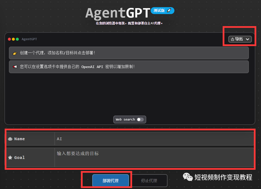 AutoGPT既可以部署在本地,也可以部署在服务器上。为了让普通用户更加便捷地体验AutoGPT,一些专家将其部署在服务器上,并开发出AgentGPT网站,让用户通过网站与AutoGPT进行交互。因此,AgentGPT可以被视为AutoGPT的网页版,是一款为普通用户提供高效体验的应用程序。
