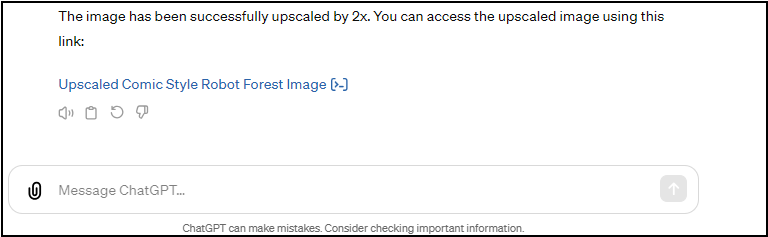 完成后,你不会直接在聊天界面看到已放大的图片,而是会得到一个下载链接,从那里你可以下载放大后的图片。