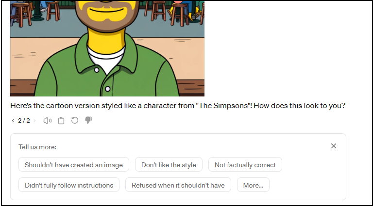 如果你真的不喜欢某张图片,请点击 "大拇指向下 "按钮,来标记这个结果为“不满意”。以便 ChatGPT进行调整和优化。