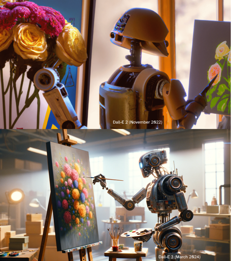 下面是 2022 年的 Dall-E 2 和 2024 年的 Dall-E 3 的区别。