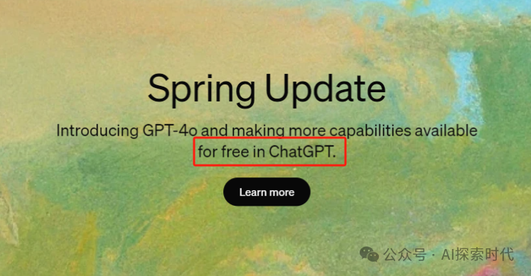 如下图所示,这是openAI公司官网关于春季发布会的介绍,明确写明了free in ChatGPT。