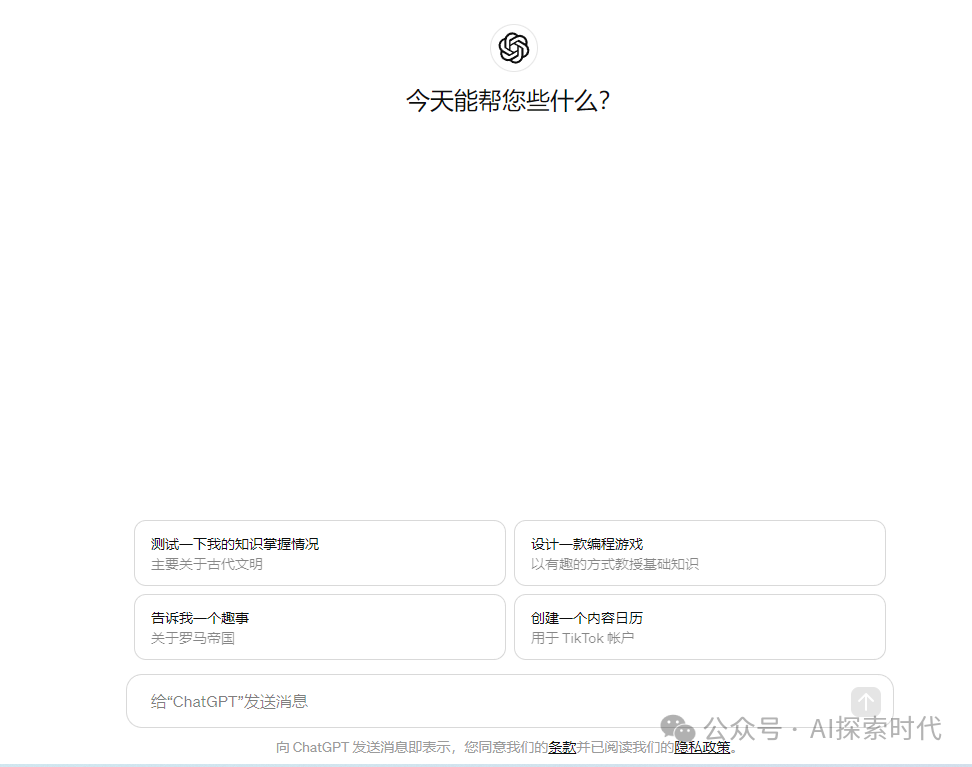 如下图就是chatGPT,本质上就是一个聊天窗口,用户可以通过这个聊天窗口和GPT-4o进行交流。