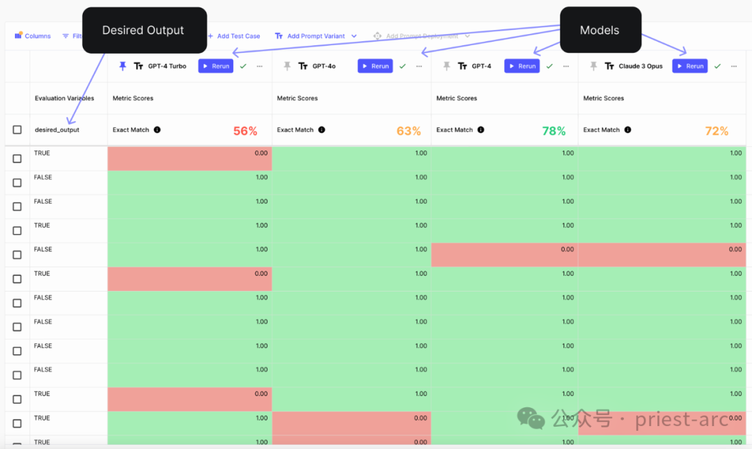 通过运行评估,以测试模型的输出是否与100个标记测试用例的地面真值数据相匹配,以下是相关结果: