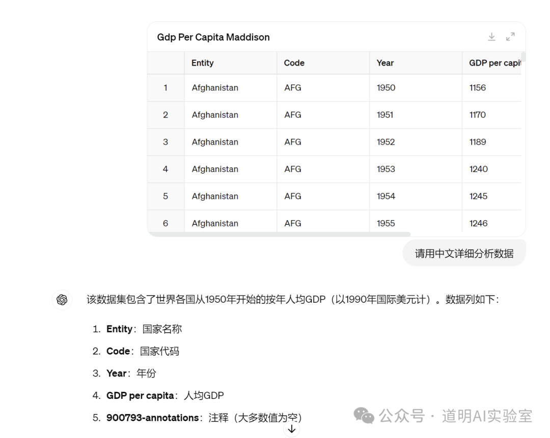 我们更期待它在数据分析能力上的表现,所以我直接从owid上下载了各国家或地区的人均GDP数据。