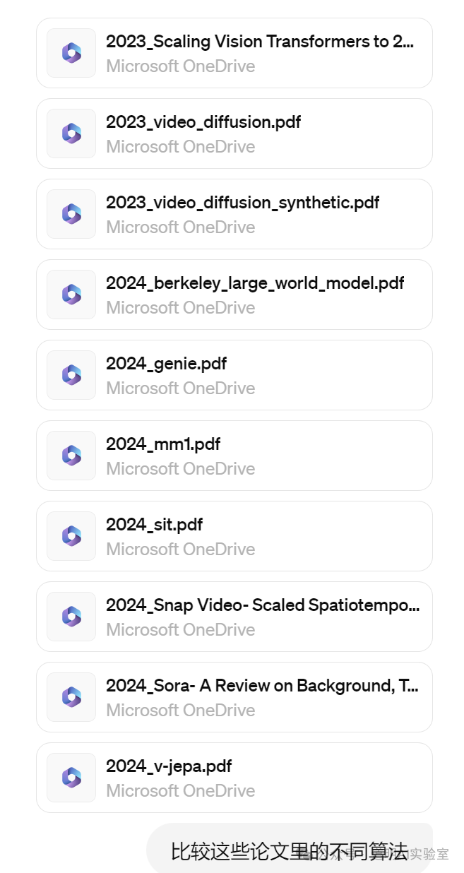 首先,就是上传文件功能,可以从onedrive里选择不超过十篇文档,我选择了关于视频生成方面的论文。