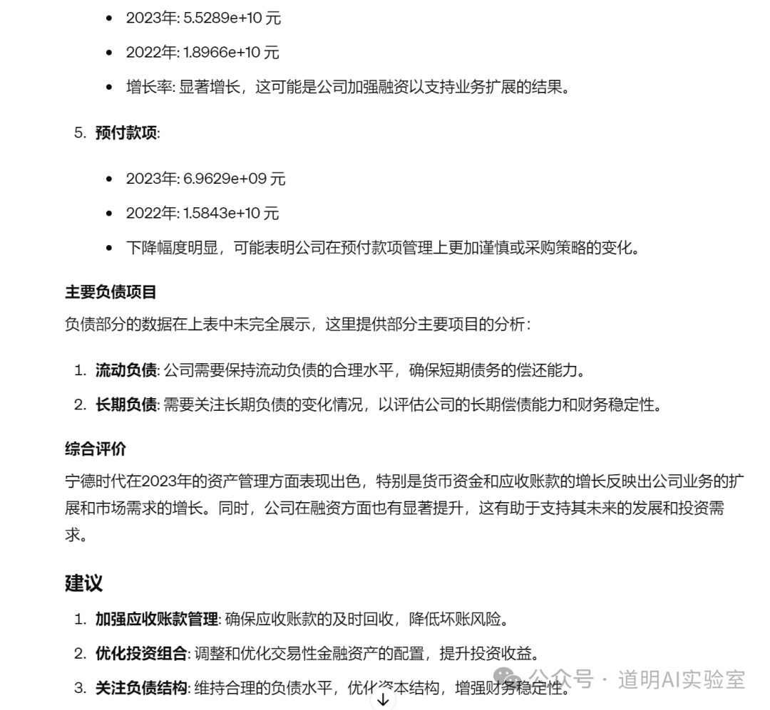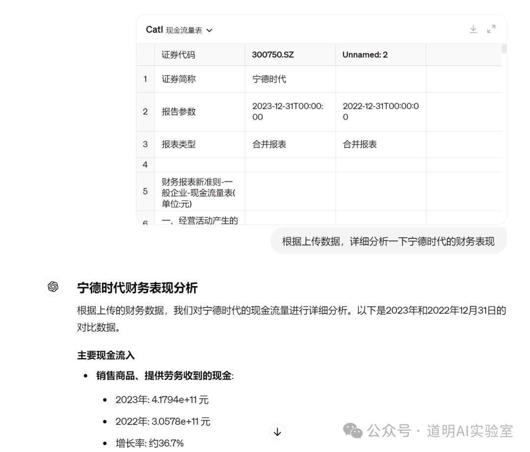 是的,当data analysis功能上线后,大模型不能处理数据的时代也宣告结束了,甚至它可以自己选择重点关注的财务指标进行分析,当然,如果我们在以后优化prompt,完全可以让模型自己输出优秀的财务分析报告。