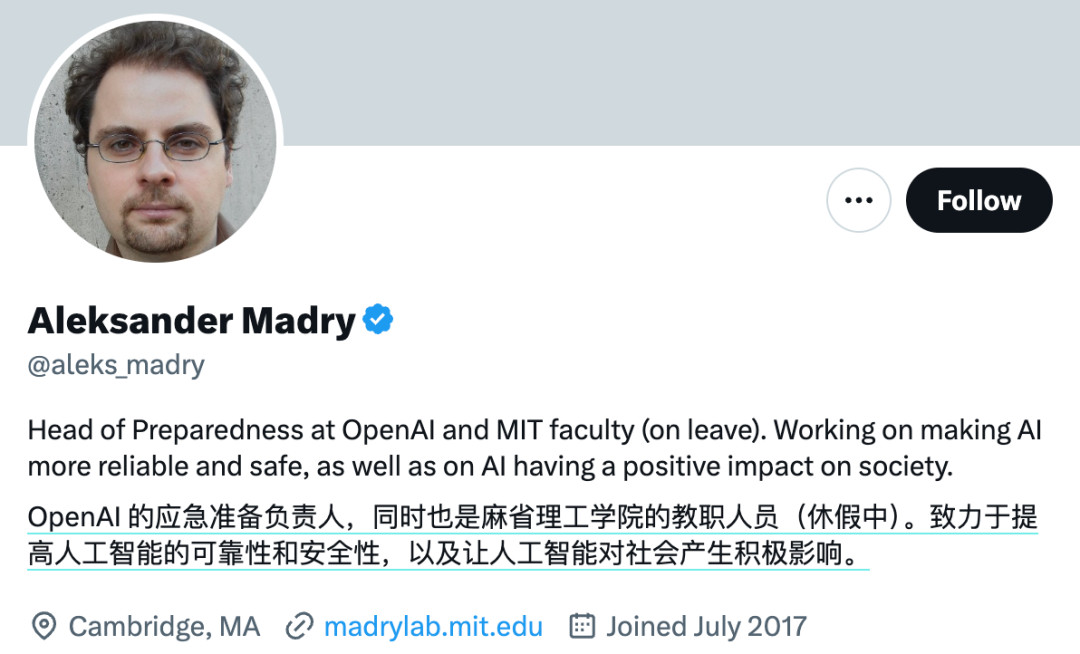 OpenAI 的技术和政策专家 Aleksander Madry(应急负责人)、Lilian Weng(安全系统负责人)、John Schulman(对齐科学负责人)、Matt Knight(安全负责人)和 Jakub Pachocki(首席科学家)也将加入委员会。