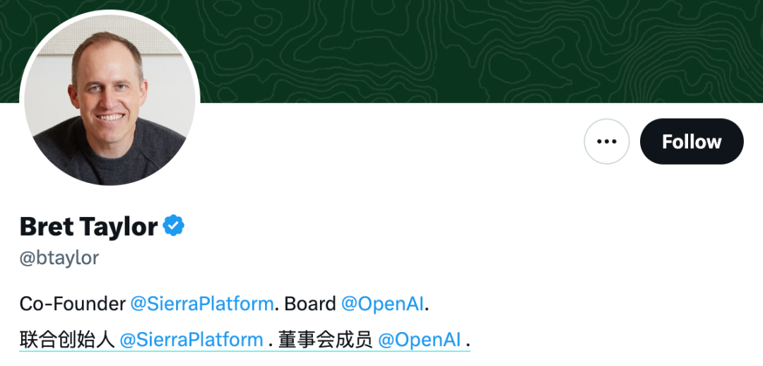 之前创造了 Google Maps,曾担任 Meta Facebook 的 CTO、Twitter 董事会主席以及 Salesforce 的联合首席执行官。现在他是 OpenAI 的主席和 Shopify 的董事会成员。