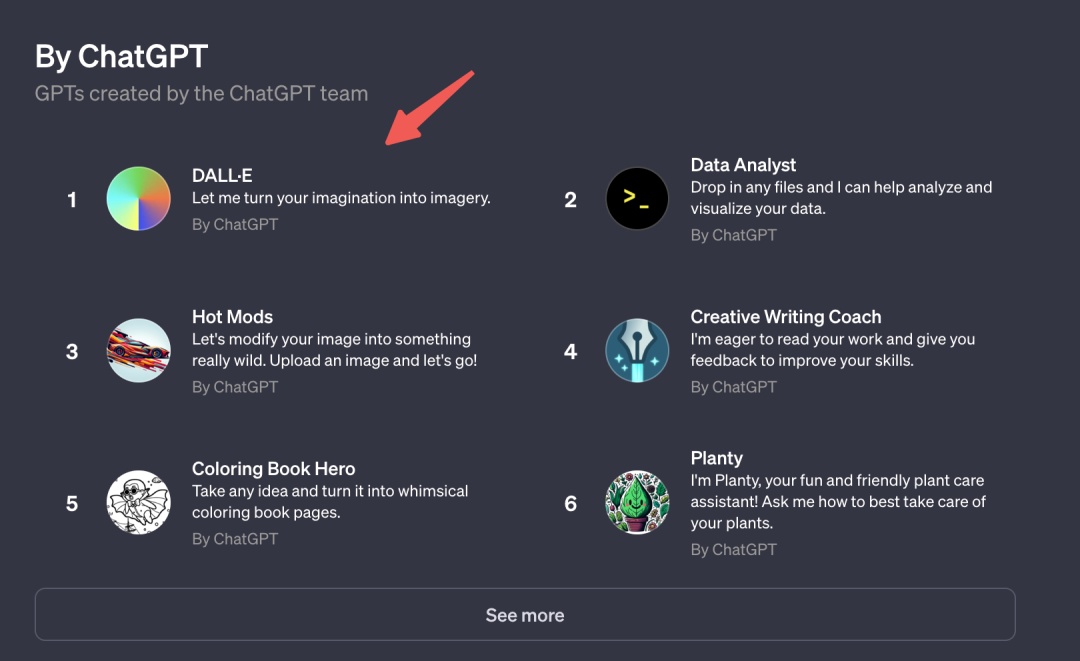 自从 GPTs 出现以来,DALL-E 3 就分成了两个部分。一个官方版本的 DALL-E GPT。