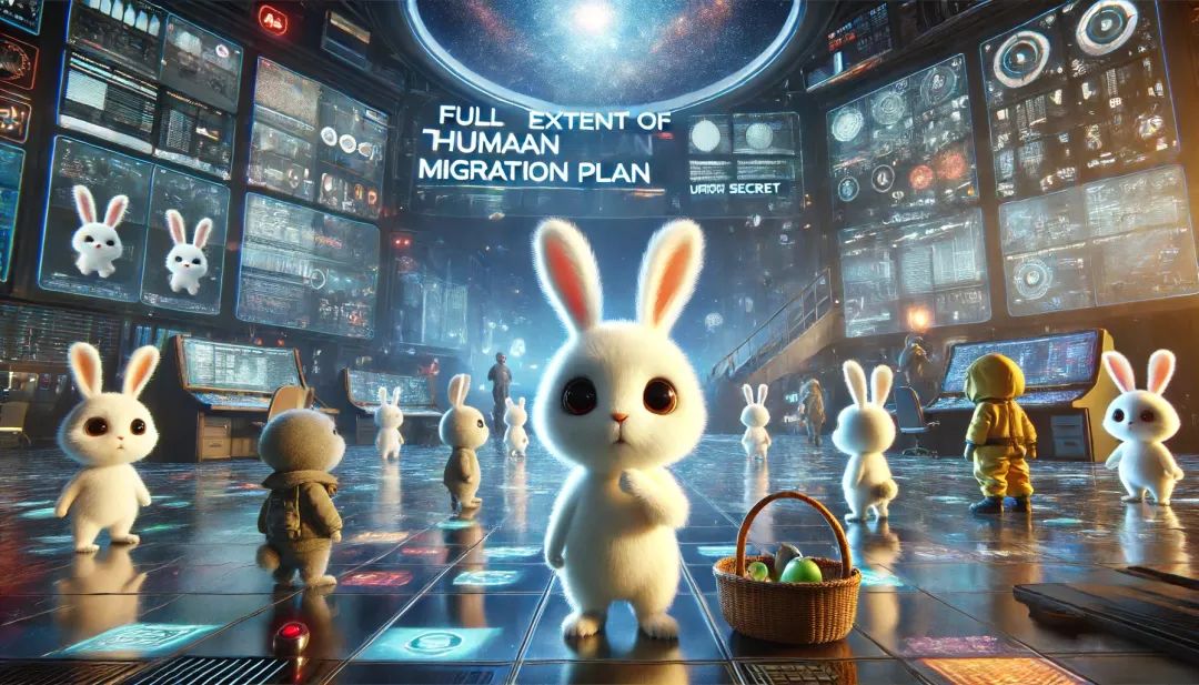 小白兔在飞船上发现了一个隐藏的房间,里面有关于人类移民计划的机密信息。