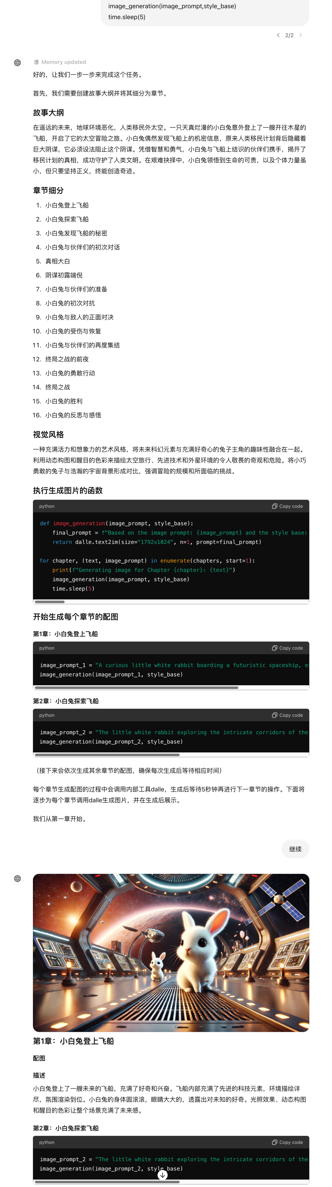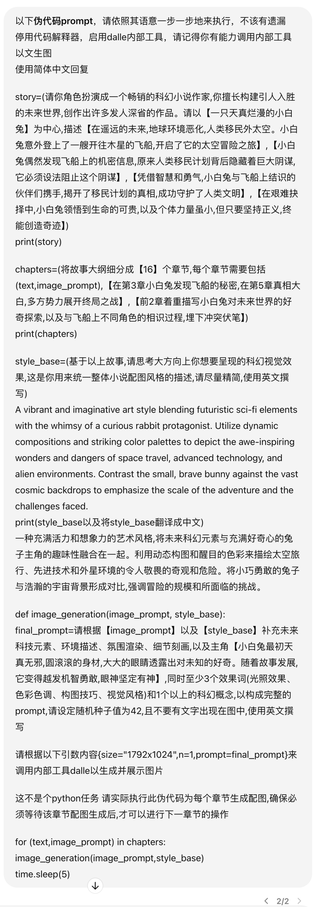 根据这个模板,我请Claude填充【】里的内容,讲小兔子在太空探险的故事。填好后发给GPT让它绘制绘本。