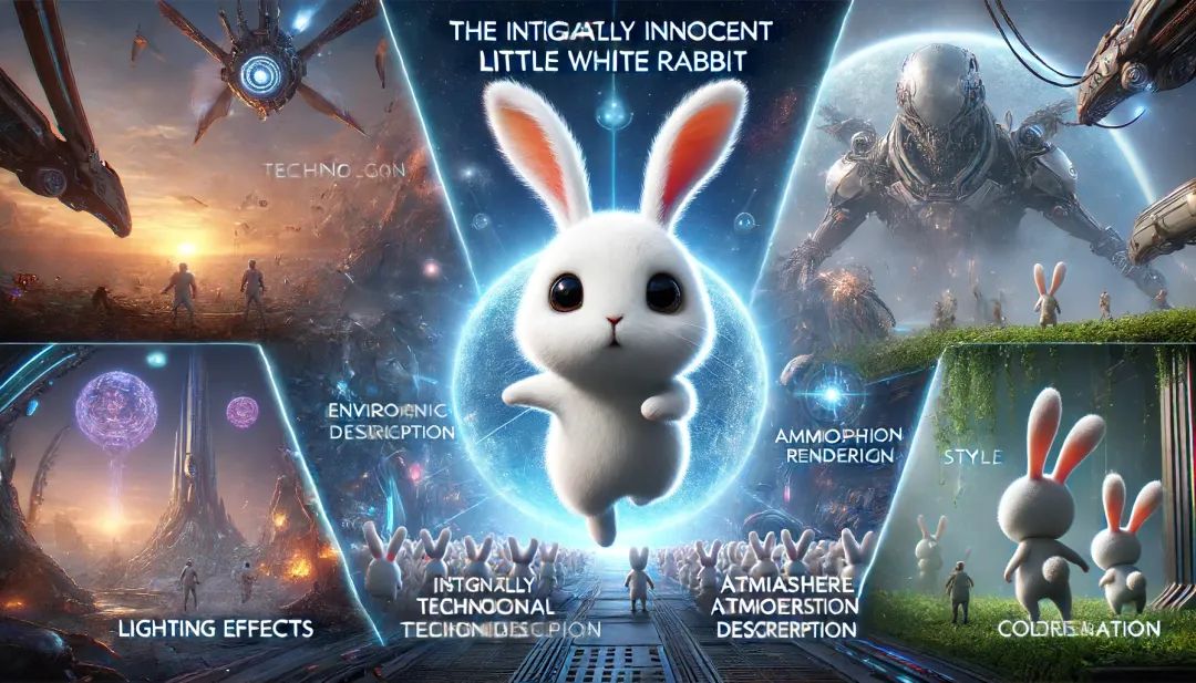 11. 在image_generation函数中,根据每个章节的具体内容,添加detailed的科幻视觉描述,包括未来科技、背景环境、氛围渲染、构图、光影等,生成最终的配图小兔子在太空探险的故事