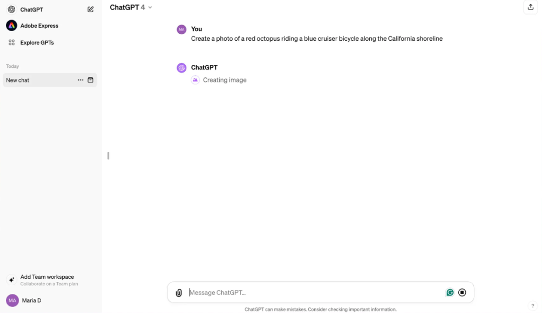 ChatGPT Plus 用户在使用 GPT-4 和 GPT-4o 时,可直接要求聊天机器人生成图片,无需另外启用图像生成器。
