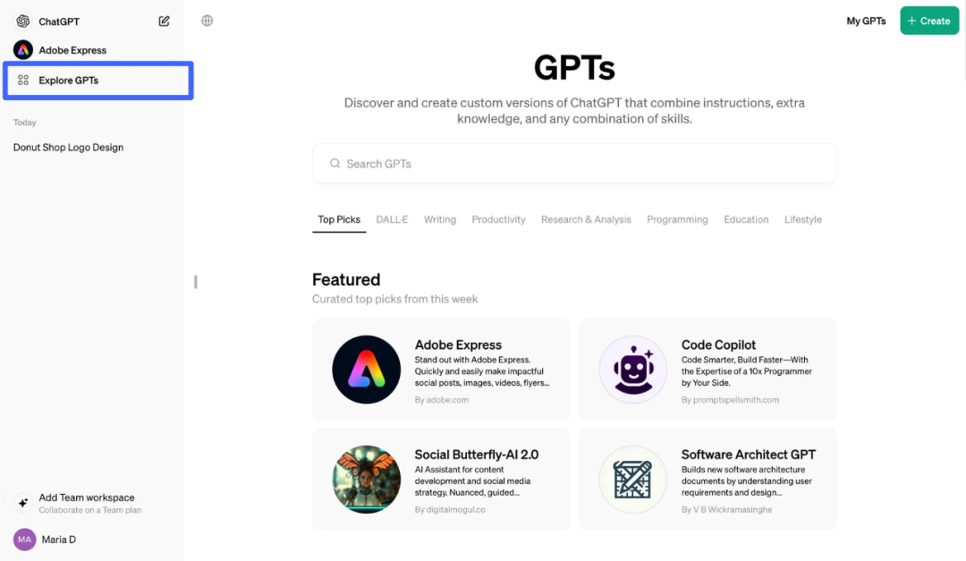 现在,你可以浏览可供你使用的不同 GPT 机器人。
