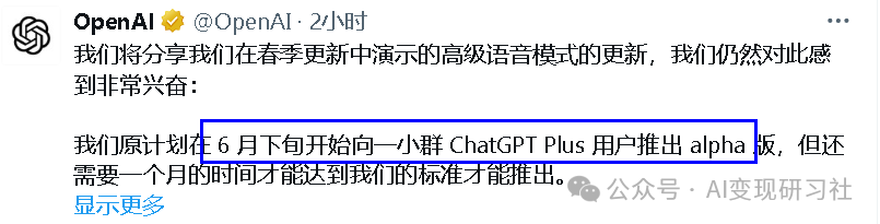 “我们在春季更新中展示了非常令人激动的高级语音模式更新,现在我们要分享关于更新的最新情况: