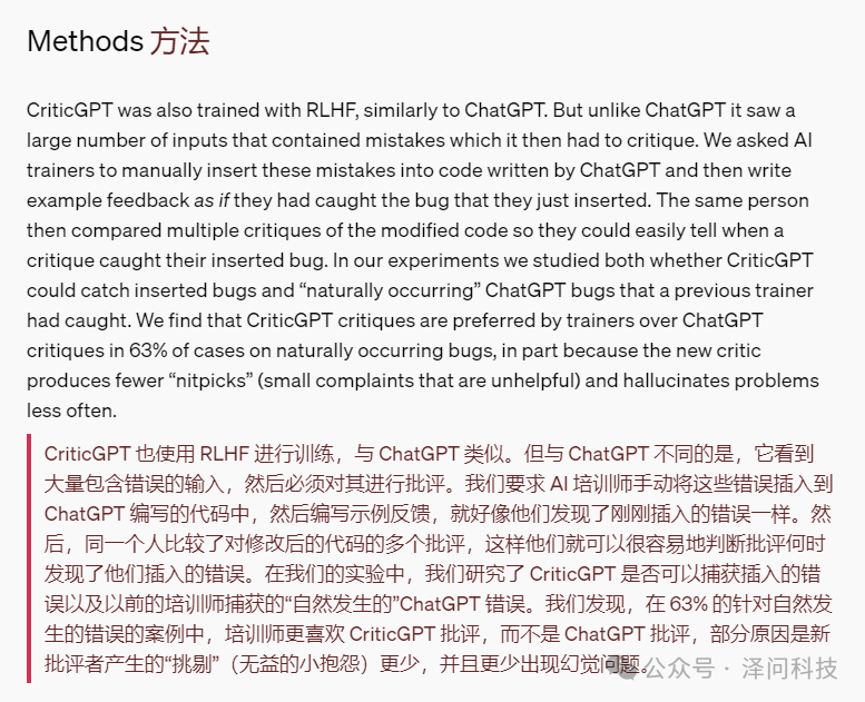 RLHF,作为ChatGPT的核心技术之一,以前总是受限于人类能力的天花板。人类给不出反馈,AI自然难以改进。然而,凭借CriticGPT的强大挑错能力,OpenAI不但突破了这一瓶颈,还开始在内部训练流程中应用CriticGPT。这种“自我改进”的机制,让AI自己担任起了批评者的角色,不断迭代和优化。超级对齐团队的Jan Leike带领的研究结果显示,在真实世界数据挑错上,AI还能更进一步,而人类智能已经到头了。🔍🤖